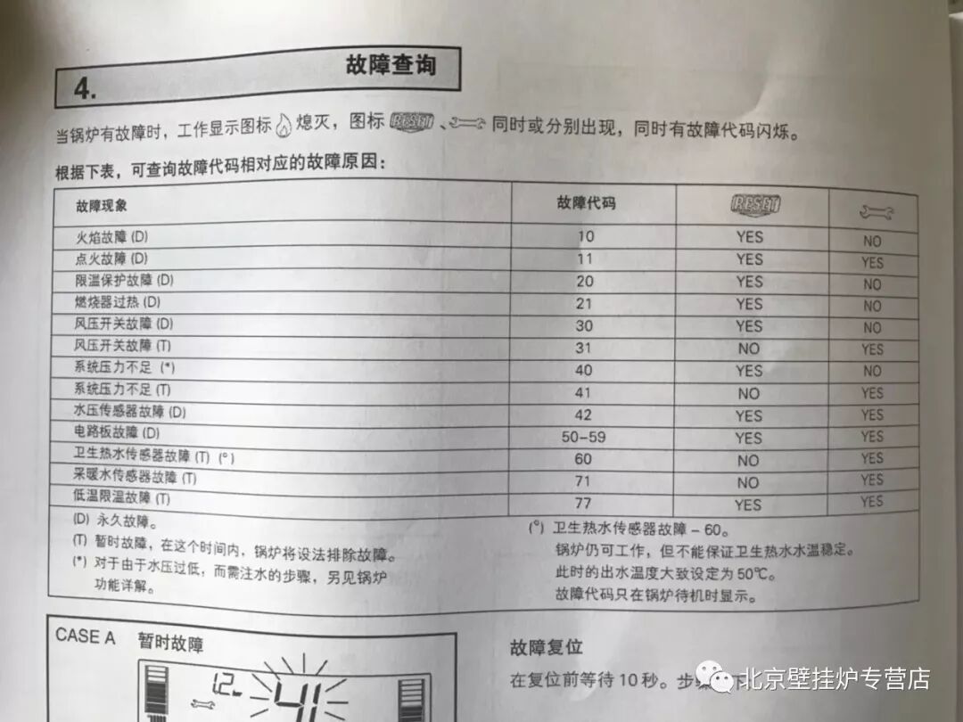 1、故障A01-02-03:旋转功能选择按钮置于OFF/RESET位置,等待5-6秒,然后置于所需要的位置,冬季模式或者夏季模式;如果锅炉依然不工作,需要联系当地服务;
